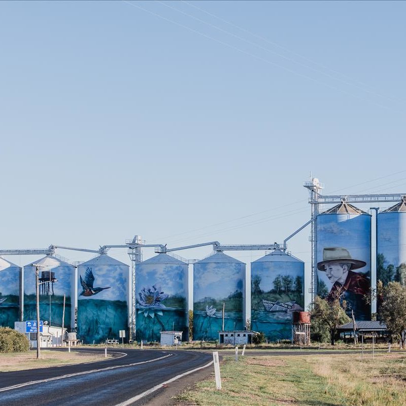 After the farm tour, enjoy a hearty lunch at a local pub before continuing our journey. Final Stop: Yelarbon Silos. On our return trip, we’ll visit the Yelarbon Silos — a landmark of the region’s grain industry and home to stunning silo art that celebrates rural life.